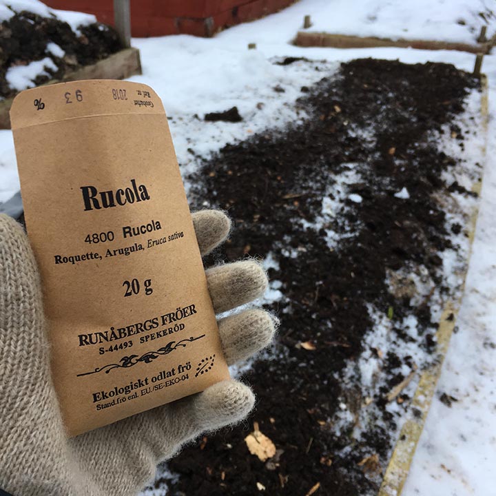 Sara Bäckmo of Skillnadens Trädgård has been an inspiration for this tutorial, and her video Vintersådd av Smörgåsgrönsaker follows a step-by-step regime for sowing during winter. Grow Gothenburg's Jonathan Naraine has also recently completed his own sowing in snow project with carrots and ruccula and will complement Sara’s teachings below.