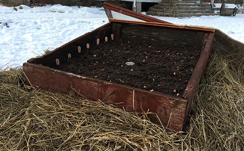 7. Planting/seeding time! After adding soil and watering the bed, we are ready to sow our seeds. Choose quick growing seeds like spinach, salad greens, ruccola, radish and turnip or other leafy greens which you can harvest as young plants. It is also beneficial to plant indoors for a month before the hotbed is ready to be planted, and young salad plants will explode in growth as they get out in the hotbed.